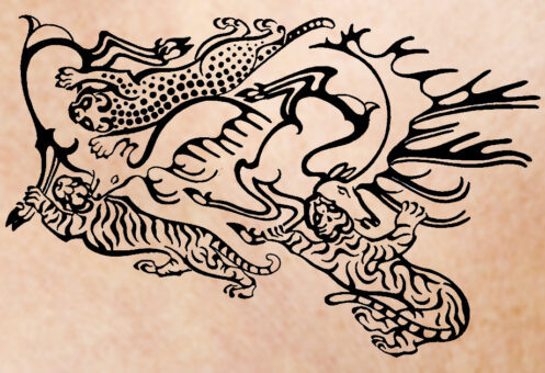 Увлекательное исследование провела международная команда археологов под руководством Джино Каспари из Института геоантропологии Общества Макса Планка в Германии. Они «разглядели» татуировки на мумии, которая была найдена в пятом пазырыкском кургане в Улаганском районе в 1949 году экспедицией под руководством Сергея Руденко. В этом кургане, самом богатом по набору вещей (колесница, древнейший ворсовый ковер, живописный войлочный ковер и многое другое) находились мумии знатных пазырыкцев – мужчины и женщины, примерно 50-летнего возраста. Ученые назвали их вождем и супругой вождя. Обе мумии сейчас хранятся в Эрмитаже. Из-за плохой сохранности татуировки на телах на момент раскопок не были визуализированы, в отличие от мумии из второго пазырыкского кургана – замороженного. Там лед сохранил богатые татуировки по всему телу мужчины – рисунки легко можно найти в интернете. Тем не менее впоследствии ученые узнали (благодаря всемирно известным раскопкам на Укоке), что все члены пазырыкского общ