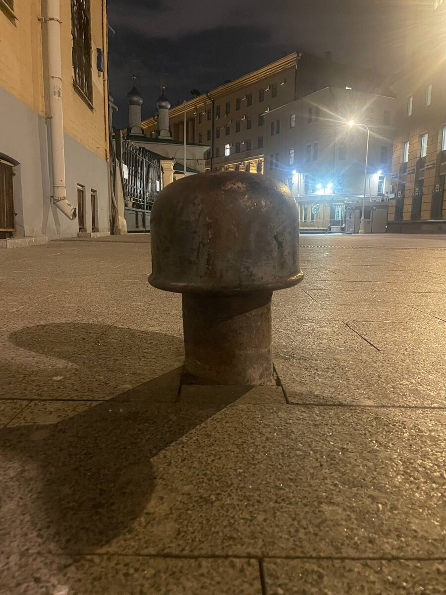 Занимательное москвоведение: Что это за тумба или каска, спросите вы. Действительно, так сходу и не скажешь, что это такое. На самом деле, раньше это была очень важная деталь в системе сохранения атмосферы города. Это тумба дореволюционной городской канализации. Правильное название этого сооружения – «тумба для притока наружного воздуха в смотровые колодцы». Использовали ее для того, чтобы в канализации не скапливались газы, которые могли навредить атмосфере города. Раньше таких штук было примерно тысячи полторы, сейчас в Москве их сохранилось всего три: на Чистых прудах, в Колобовском переулке на Школьной улице.