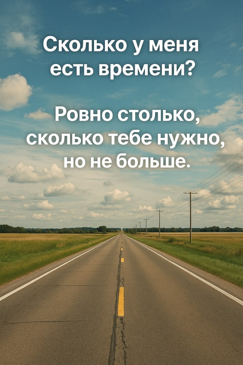 ⏳ Сколько у меня есть времени❓ — Сколько у меня есть времени? — спросил я однажды. — Ровно столько, сколько тебе нужно… но не больше, — ответила Вселенная. 📍 Сегодня будет практичный пост. Без метафизики и притч😁 ➡️ Несколько лет назад я впервые задал себе этот вопрос — что делать, если ситуация требует решения, а ты не готов его принять (не знаешь/не можешь, неважно)? Первая половина пришла от старших товарищей. Остальное — дошло совсем недавно. Делюсь😎 📍 Представьте любую значимую жизненную ситуацию: отношения, работа, проект, переезд — неважно. Она развивается, длится, зреет. Ты чувствуешь: скоро нужно принимать решение. Что-то менять. Выходить на новую площадку. Но ты не готов. Внутри всё сжимается. Ты не знаешь, что правильно, а что нет и куда вообще двинуться. ➡️ И вот тут первая ключевая мысль: жизнь — это не снайперская винтовка, где один патрон, один шанс, один выстрел. ✅ Жизнь — это МКАД. Куча съездов. Ты можешь пролететь нужный поворот, если не готов. Но дальше б