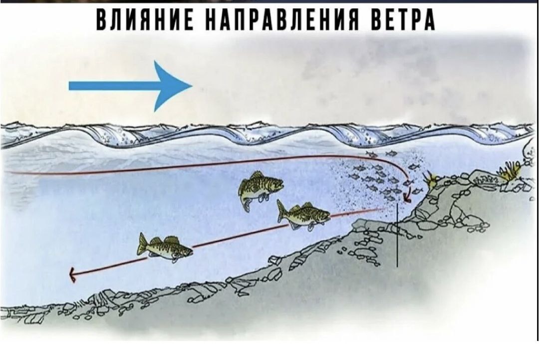 Влияние ветра на клёв Среди большинства рыбачков есть мнение, что наиболее благоприятными для рыбалки являются западное, южное и промежуточные между ними направления ветров. Отчасти, это действительно так. Ведь такие направления движения воздуха, если и приносят осадки, то как правило, это грозы и дожди. Если, разумеется, речь идёт о теплом времени года. На самом деле, четкой зависимости между направлением ветра и клёвом нет. Клевать может при любом направлении. Гораздо важнее, где находится рыбак. Наиболее благоприятным расположением места ловли, является наветренная сторона берега. Волны приносят корм, поднимают муть, и это заставляет часть рыбы держаться прибойной зоны. Другое дело, что при сильном ветре, не очень комфортно контролировать приманку из-за образовании дуги на леске, это может сказываться на качестве анимации и, в конечном итоге приводит к уменьшению числа поклёвок. Другими негативными факторами являются сложность заброса, снижение дальности заброса, а в случае ловли