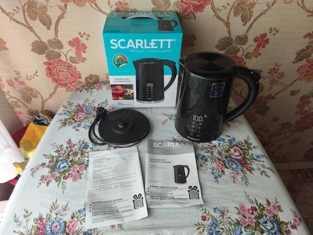 Электрический чайник Scarlett SC-EK21S66 – это современное устройство, которое станет превосходным помощником на вашей кухне. С его помощью вы сможете не только быстро кипятить воду, но и готовить различные напитки с учетом их температурных требований. Ниже рассмотрим более детально его характеристики, преимущества и недостатки. Характеристики Тип и мощность Scarlett SC-EK21S66 относится к электрическим чайникам с двойными стенками, что способствует улучшению теплоизоляции и безопасности использования. Мощность устройства составляет 2200 Вт, что позволяет быстро доводить воду до нужной температуры, значительно сокращая время ожидания. Объем Объем чайника равен 1.7 литра, что идеально подходит как для одной-двух порций чая или кофе, так и для заваривания нескольких чашек одновременно. Это делает устройство удобным в использовании для семей или небольших компаний. Температурные режимы Одним из главных преимуществ этого чайника является наличие 6 температурных режимов: - 40°С - идеально п