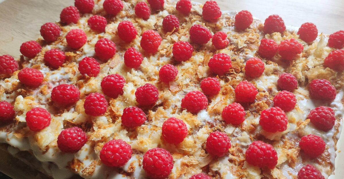 А-ля Наполеон Я люблю делать что-то с сезонными овощами, фруктами или ягодами. Недавно писала рецепт вкусного варенья из ревеня. Потом начала зреть малина и в этом году ее так много, что я успела объесться до аллергии, мама и бабушка наварили варений, компотов, заморозили, я поставила настойку и много всего еще. А потом я подумала, что хочется торт. Но такой, чтобы не заморачиваться. И родился этот рецепт :) Если вам понравится рецепт, ставьте палец вверх и пишите комментарии, мне интересно ваше мнение! Можете также задавать вопросы, я обязательно на них отвечу, все подскажу. И подписывайтесь на канал, впереди еще много рецептов на все случаи жизни! :) - Ванилин по желанию 1. Сначала выпекайте коржи, собирать их в торт лучше остывшими. У меня каждый стоял в духовке минут 10-15 на 180 градусах. Можно и вовсе не раскатывать готовые кусочки, торт будет более компактным и пышным. Но я хотела не шибко пышный и больше по площади, поэтому вручную аккуратненько растягивала и разминала коржи по