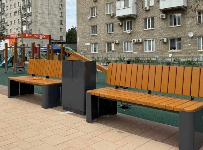 В Волгограде устанавливают новые скамейки в сквере на Металлургов