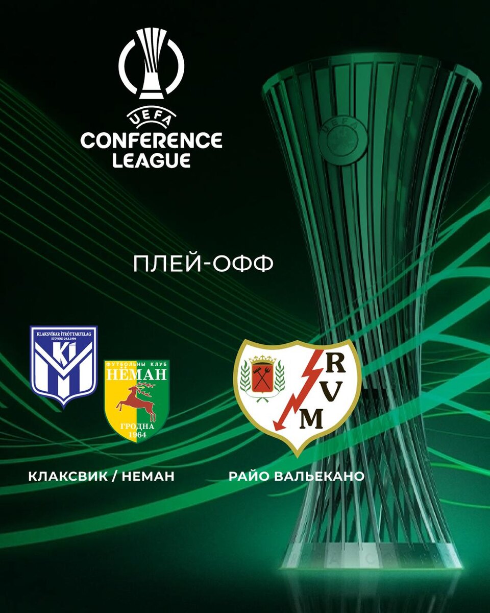 Гродненский ФК "Неман" узнал потенциального соперника в раунде плей-офф Лиги конференций Если гродненцы пройдут фарерский "Клаксвик", то в финальной стадии квалификации сыграют с испанским "Райо Вальекано". Завтра, 5 августа, "Неман" проведет первый матч третьего раунда отбора против "Клаксвика", ответная игра — 14 августа. @SPUTNIKBY