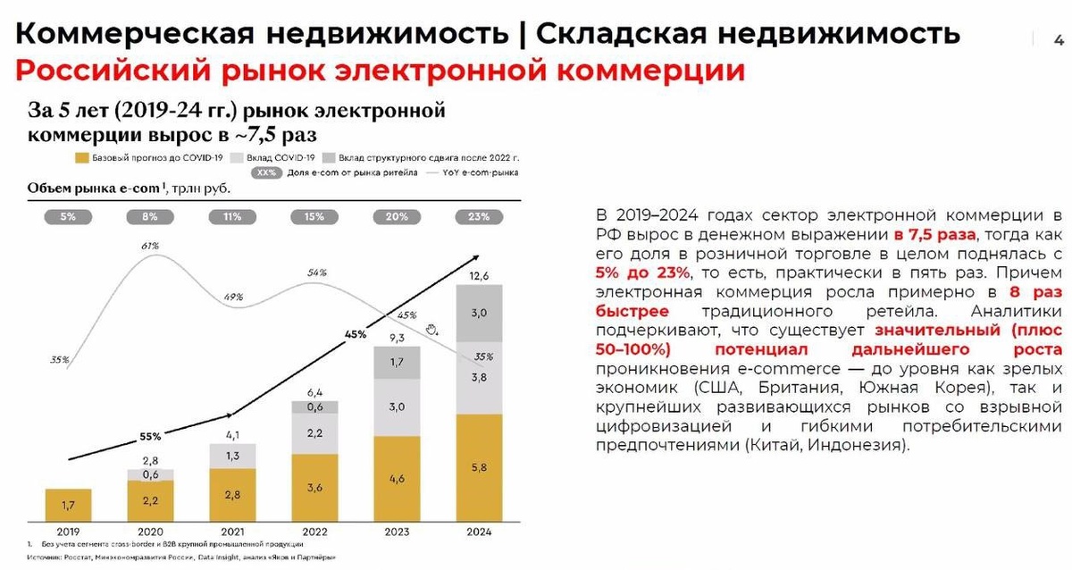Электронная коммерция в России продолжает расти, а значит потребность в складах будет увеличиваться