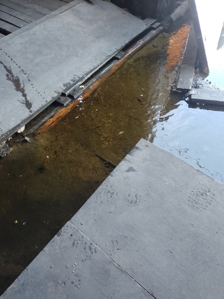 В вольере Барона вода уже вышла на настил. Сухо только на подстилке…