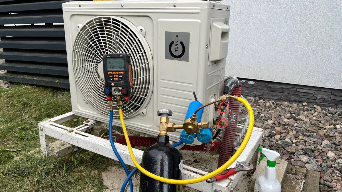 Часть 2. Чиним канальный охладитель Напомню предыдущую часть: мой охладитель, который охлаждает весь приточный воздух после фильтрации, перестал работать - совсем. Один «мастер» (которого мне с горем пополам прислали из официального сервиса производителя) уже был, он заправил фреон в дырявую систему и исчез с деньгами. Спустя пару недель всё снова сломалось. На этот раз мы с Димой из Windson пошли по инженерному пути. Провели поочерёдную опрессовку азотом: 🔹Сначала внутреннего блока (испарителя), 🔹Потом наружного (ККБ), 🔹 Затем трассы отдельно. Везде — герметично, давление держится. Значит, либо утечка в соединениях, либо (что более вероятно) - через крышки сервисных портов наружного блока. Эта часть в системах - почему-то всегда самая “творческая”. 👉 Чтобы исключить возможность утечки, крышки (отметил на фото) сервисных портов мы посадили в итоге на анаэробный герметик. Дальше весёлое. Пока возвращали охладитель на место, упал приточный глушитель. Прямо с потолка, с высоты 3,5 м