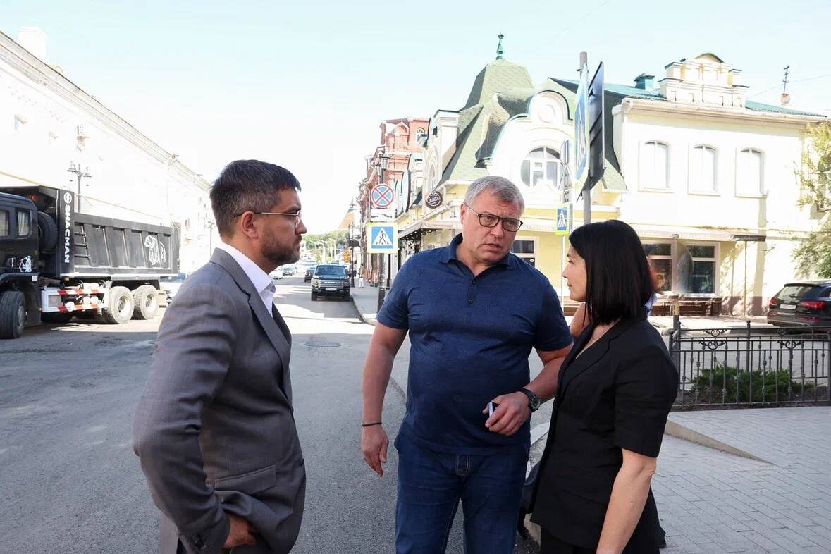 Ход работ по благоустройству улиц Никольской, Фиолетова и Ульяновых в рамках нацпроекта «Инфраструктура для жизни» проверил губернатор Астраханской области Игорь Бабушкин.