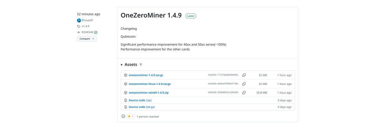 OneZeroMiner 1.4.9 — Значительное улучшение производительности на Qubitcoin для серий 40xx и 50xx (~100%). Улучшение производительности для других карт Скачать