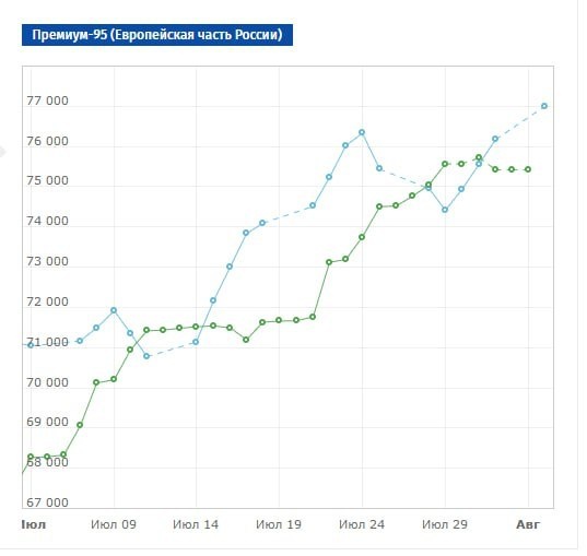 На Санкт-Петербургской международной товарно-сырьевой бирже стоимость бензина увеличилась на 1,08%, достигнув рекордных 77 001 руб. за тонну.