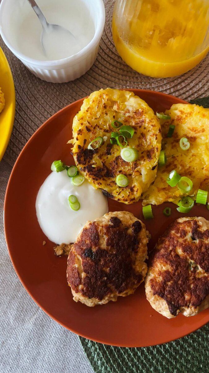обжариваем на огне выше среднего с двух сторон до золотистой корочки, подаем со сметаной и зеленым луком. с куриными котлетами тоже можно.
