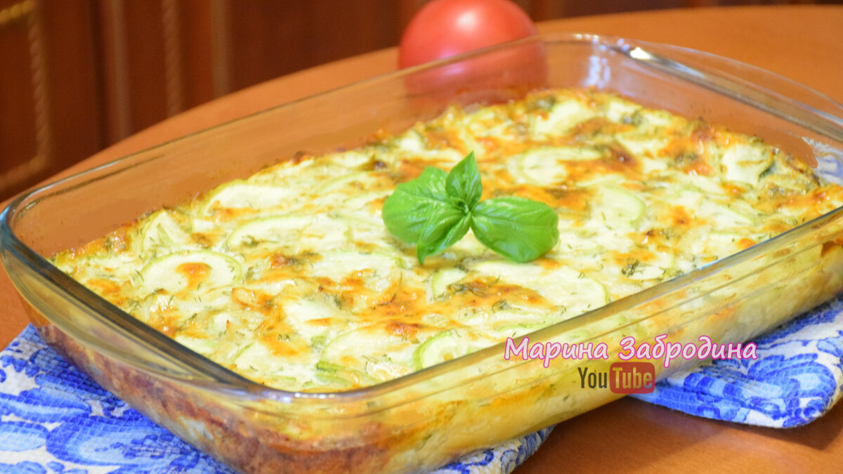 Привет, друзья! Хотите еще один рецепт из кабачков? Да пожалуйста) запеканка из кабачков. Рецепт очень простой и легкий. Запеканка классная, это просто чудо какое-то! Очень вкусно! ПРОДУКТЫ ДЛЯ РЕЦЕПТА ВЫ НАЙДЁТЕ В КОНЦЕ ЭТОЙ СТАТЬИ. 1. Лук нарезаем полукольцами, разогреваем на сковородке масло и будем обжаривать несколько минут до светло-золотистого цвета. Когда он обжарился, добавляем немного соли и убираем с огня. 2. Молодые кабачки нарезаем тонкими кольцами, складываем их в миску и немного посолим. Затем натрём сыр на крупной тёрке, а укроп мелко порежем. 3. Нам только осталось приготовить яично-сливочную заливку. В глубокую миску разбиваем яйца, добавляем соль, сливки, растительное масло, всыпаем нарезанный укроп и одну чайную ложку сушеного чеснока. Всё хорошенько перемешиваем и заливка готова. 4. Форму для запеканки смазываем сливочным или растительным маслом, выкладываем кабачки, затем выкладываем обжаренный лук и всё перемешаем. 5. Сверху распределяем тёртый сыр. Заливку ещё