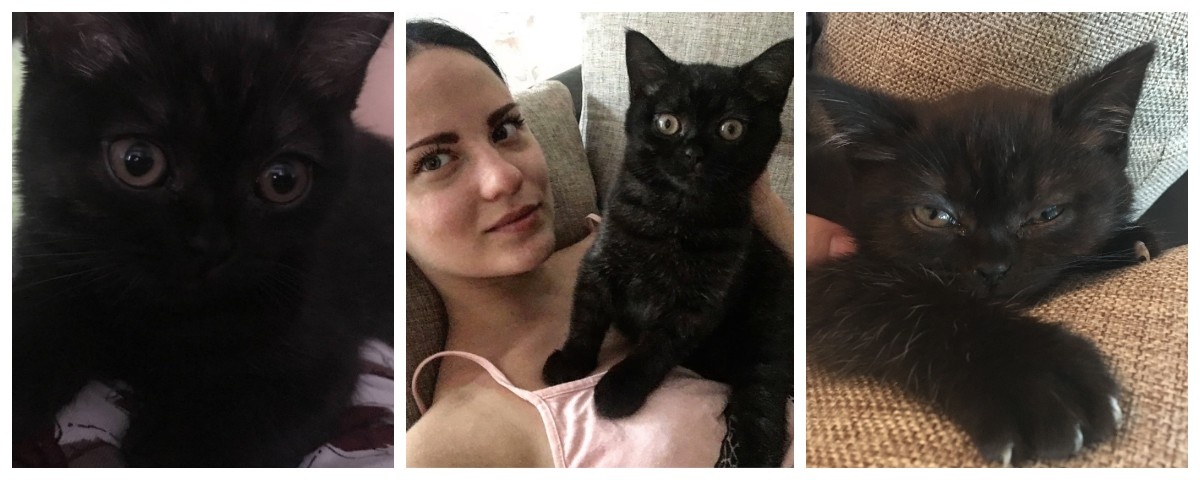 Увидела её я чисто случайно, проходя на рынке мимо клетки с котятами. Сердце у меня разрывалось, хотелось забрать всех, но черный комочек с желтыми глазками на меня смотрел как-то по особенному... Я поговорила с (теперь уже бывшим) мужем, и мы решили, что мы возьмем к себе в семью это чудо, к тому же, тогда мы только переехали в свою квартиру. Взяли маленького котенка, купили всё необходимое для её существования, и помчали на всех парах домой. Этот маленький комочек очень трясся сидя у меня на руках, но я знала, что я стану ей лучшим другом, и помогу адаптироваться ко всему. По размеру она была крохотной, очень трусливой, но такой милой.