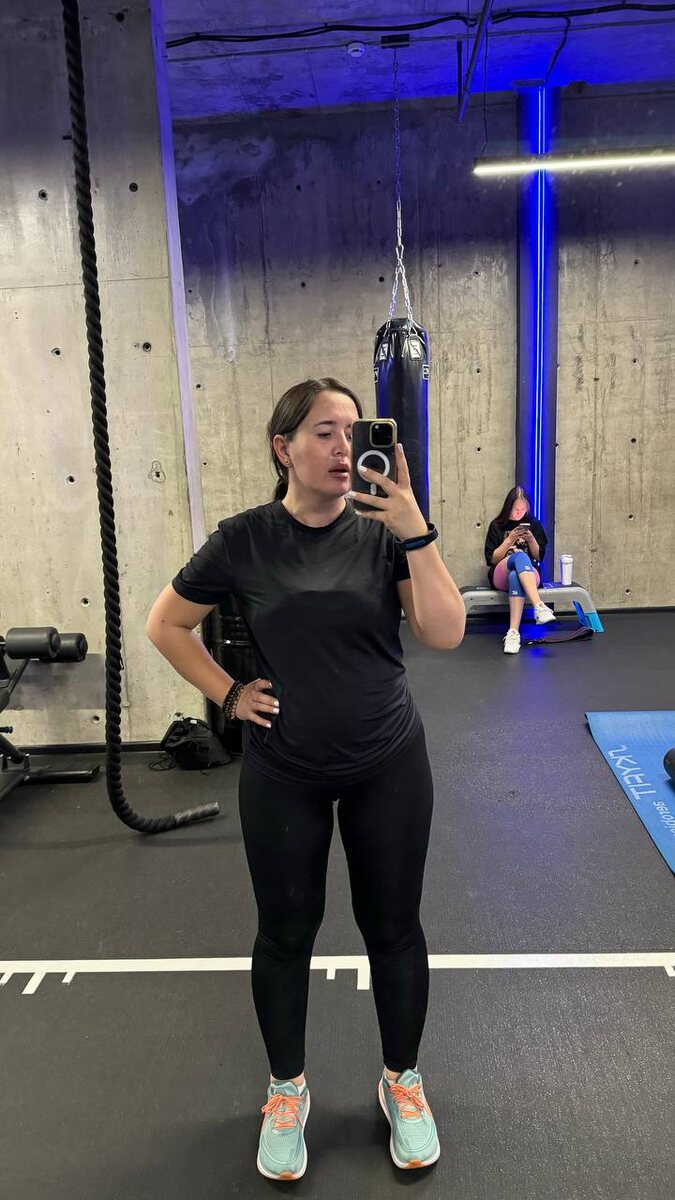 С возвращением меня в зал! Не была почти два месяца, а до этого несколько месяцев было: хожу - не хожу. Как итог: моя сама худшая форма! Хочу посмотреть динамику позже, поэтому показываю вам и оставлю на память, чтоб не возвращаться к такому состоянию 🫣