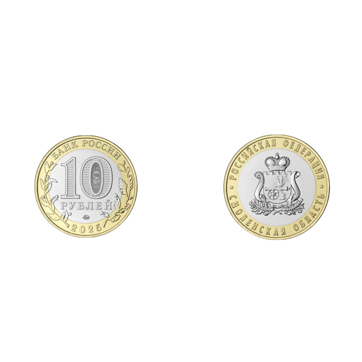 5 августа коллекционеры и жители страны смогут получить новую монету номиналом 10 рублей. Завтра, 5 августа, Банк России выпустит в обращение памятную монету номиналом 10 рублей «Смоленская область» серии «Российская Федерация» из недрагоценных металлов. Как рассказали в пресс-службе Банка России, диаметр монеты составляет 27,0 мм. Монета состоит из диска и внешнего кольца, что делает ее комбинированной. С обеих сторон у монеты по окружности есть рельефный выступ. На рифленой боковой поверхности есть надписи «ДЕСЯТЬ РУБЛЕЙ», которые повторяются дважды и разделены звездочками. — На лицевой стороне монеты на кольце по окружности расположены надписи: в верхней части — «БАНК РОССИИ», в нижней части — «2025». Слева и справа на внешнем кольце расположены изображения ветвей лавра и дуба соответственно, элементы изображения которых переходят на диск. В центре диска расположены число «10» и надпись «РУБЛЕЙ» под ним, обозначающие номинал монеты. Внутри цифры «0» имеется защитный элемент в виде ч