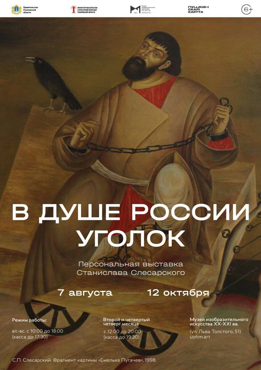 Открытие персональной выставки Станислава Слесарского «В душе России уголок» 🗓️ 7 августа, 16:00 📍Музей изобразительного искусства XX-XXI вв. Персональная выставка ульяновского живописца, Заслуженного художника РФ, лауреата Международной премии имени А.А. Пластова – Станислава Слесарского. Выставка, приуроченная к 80-летию мастера, – это возможность заглянуть в самое сердце его творчества, в его мастерскую, где рождаются шедевры, наполненные любовью к Родине, к ее истории и людям. Экспозиция представит 35 произведений, отобранных из личной мастерской художника, позволяя нам прикоснуться к его творческому миру. Станислав Петрович Слесарский родился в 1945 году в Казани. Учился в Казанском художественном училище. В 1973 окончил Ленинградский институт живописи, скульптуры и архитектуры имени И.Е. Репина. С 1980 – член Союза художников РФ. С 1987 живет и работает в Ульяновске. Участник выставок с 1974 года. Заслуженный художник РФ, лауреат Международной премии имени А.А. Пластова,