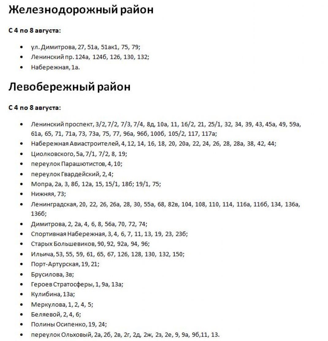 По нынешнему графику отключения горячей воды затронут дома, расположенные по следующим адресам ⬆️