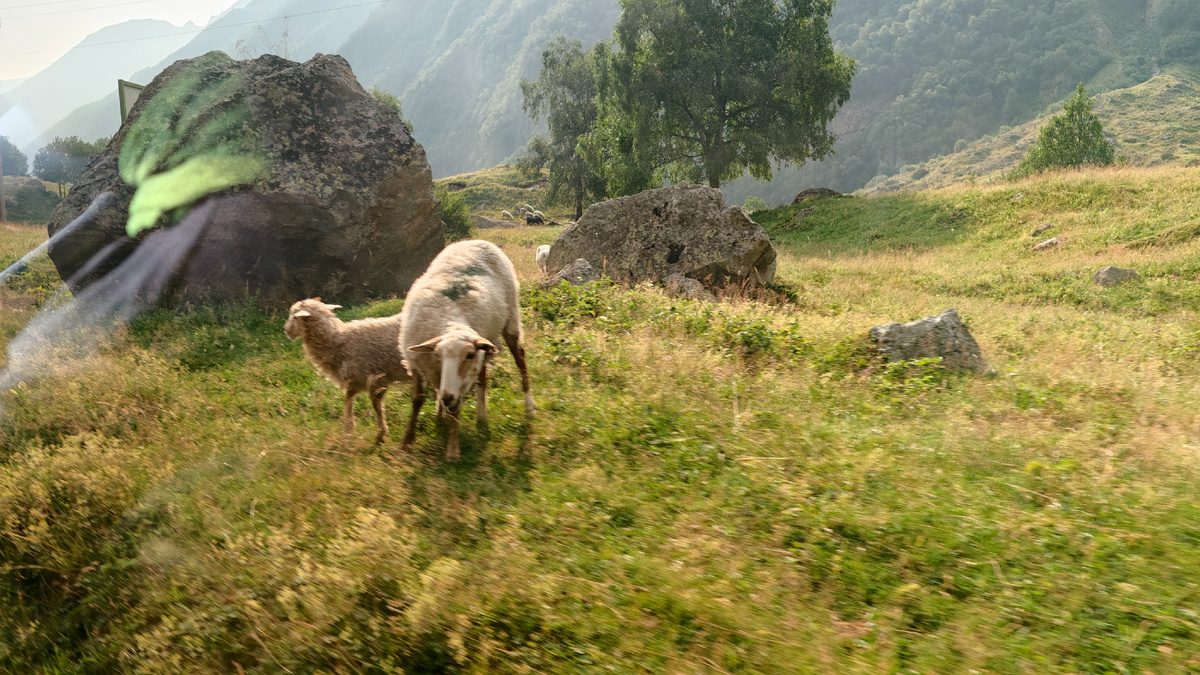 1 августа – удобная дата для начала маршрута: легко запомнить и считать дни без путаницы. Утро: сборы и отправление Проснулся в 5:30, после вечернего дождя нужно было просушить палатку, собрать вещи, перекусить и выпить кофе – особенно хотелось взбодриться после вчерашнего праздника. Кофе удалось купить в баре – 50 ₽ за «3 в 1» или 300 ₽ за молотый. Выпил три чашки растворимого (хотя больше нравился горячий шоколад из кофемашины в «Тихом углу» – но там не было стаканчиков). Уже в машине вспомнил, что забыл там повербанк на зарядке. Трансфер и прощание с Безенги Мы договорились о трансфере на 8:00 до посёлка Безенги. Непонятно, почему Роман поехал туда, а не сразу в Нальчик – надеюсь, у него всё в порядке, и он добрался до Терскола. Перед отъездом получили две тревожные новости: 1. Чума у сусликов в Приэльбрусье – теперь там отменяют мероприятия, так как грызуны стали опасны для людей. 2. Сель в Тырныаузе – возможна эвакуация. Мне же предстояло двигаться в сторону
