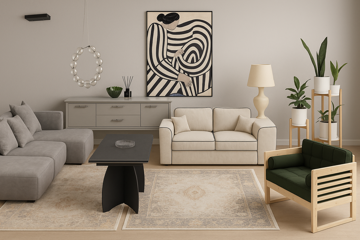 Если вы мечтаете о стильном интерьере, не нанимая дизайнера, просто сохраните себе эту статью. Мы разобрали по полочкам четыре визуальных подборки из Ozon с крутыми находками — от мягкой мебели до освежающих деталей интерьера. Главное — вы сразу поймёте, какой стиль в них заложен и как использовать эти предметы в своём пространстве. Что внутри: Стиль: Современная классика / Нью-Йорк Идеально подойдёт для интерьера в стиле luxury minimal с классическими элементами. Холодные серые оттенки, чёткие формы, металлические ручки — всё выглядит благородно и дорого. Светильник из стеклянных шаров добавляет футуристичную нотку и работает как арт-объект. Такой интерьер будет уместен в современной квартире с высокими потолками. Что внутри: Стиль: Scandi boho / Beige with Benefits Это настоящий хит среди современных интерьеров: нейтральная палитра, комфортные формы, мягкий тактильный текстиль и немного дерзкого арт-декора. Чёрная окантовка дивана и графичная картина придают нужную «перчинку». Та