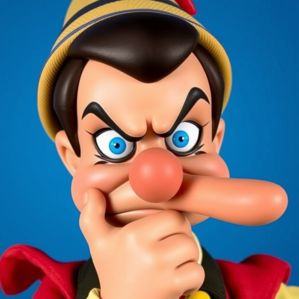 Жил-был мальчик по имени Пиноккио. Не из тех, что в сказках у камина читают детям перед сном, а из тех, что по телевизору выступают — с улыбкой до ушей, с глазами, как у человека, который знает, где и что закопано, но не скажет, потому что «секретная информация». Пиноккио был не просто наблюдателем — он был амбициозным . Каждое утро он вставал перед зеркалом и, поглаживая свой знаменитый нос, Шептал: «Сегодня я — гений. Сегодня меня оценят. Сегодня мне дадут… ну, хотя бы пятак». В наше время, древняя народная мудрость: «Бог не дурак может дать и в пятак» имеет много толкований. Правда, никто толком не знает, кто такой этот «…..», то ли фонд поддержки искусства, то ли спонсор с оффшорами, то ли просто удача, которая, как автобус, приходит только тогда, когда ты уже опоздал. Но Пиноккио не сдался. Он точил свой нос — не буквально, конечно (хотя кто знает, что творится в кабинетах у пластических хирургов?), а метафорически. То выступит с монологом про «душу нации», то записывается подк