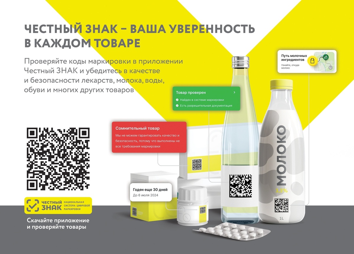 С 2018 года на территории Российской Федерации действует Национальная система цифровой маркировки и прослеживаемости товаров «Честный ЗНАК» (сайт — Честныйзнак.рф). В настоящее время система маркировки в обязательном порядке введена в отношении 27 товарных групп. С целью общественного контроля качества продукции было разработано мобильное приложение «Честный ЗНАК». Просканировав код маркировки, потребитель может проверить легальность товара, получить полную информацию о нем, а также сообщить об обнаруженной нелегальной продукции в соответствующий контрольный орган. Мобильное приложение доступно для скачивания на сайте «Честного ЗНАКа», в App Store, AppGallery, RuStore, NashStore в зависимости от типа операционной системы. xn--80ajghhoc2aj1c8b.xn--p1ai/ Источник https://uchaly102.ru/?p=94442