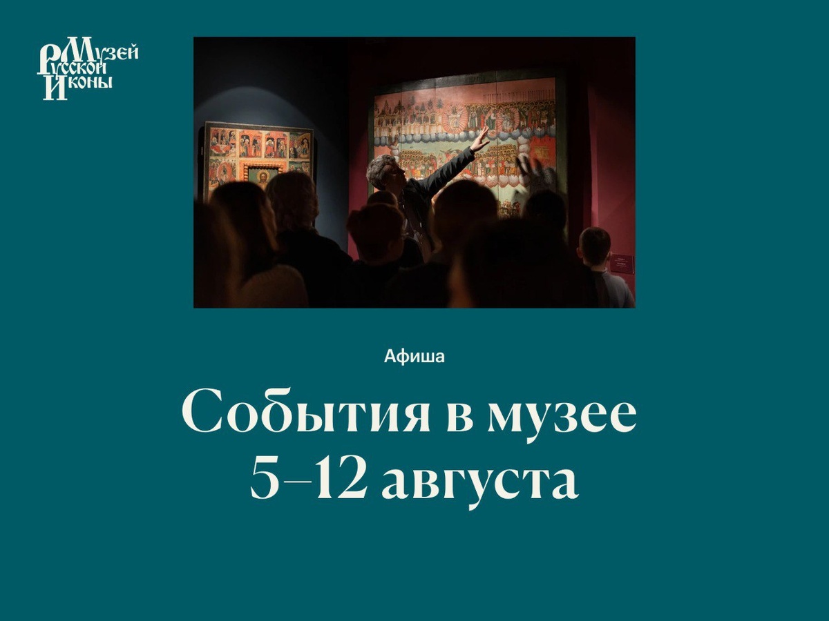События в музее | 5–12 августа Публикуем афишу на неделю и ждем вас в гости! Обратите внимание: до 10 августа включительно закрыты залы 7 и 8 на третьем этаже музея. Экскурсии Все экскурсии проходят бесплатно, по записи, число мест ограничено. • Обзорная экскурсия «Икона сквозь века» 8, 9 и 11 августа • Экскурсия «Как устроена икона» 7, 8, 9, 10, 11 августа • Экскурсия «В мастерской иконописца: техника создания иконы» 8 и 9 августа • Экскурсия «Искусство и культура Эфиопии» 7, 9 и 10 августа • Экскурсия «Искусство и культура старообрядцев» 7 и 9 августа • Экскурсия «Византийское и поствизантийское искусство» 7 и 9 августа • Экскурсия «Жемчужины древней части собрания» 8 и 10 августа • Экскурсия «Царские иконописцы. Русская иконопись XVII века» 7 августа • Экскурсия «Икона в православном храме» 8 и 11 августа • Традиции и новаторство. Русская иконопись XVIII – начала XX века 12 августа Если не видите на сайте нужную дату, значит, билеты на нее закончились. Распи