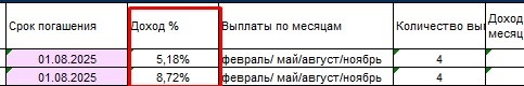 Ранее в статье по вкладам я писала, что сейчас их приходиться открывать с меньшей доходностью, чем в начале года. А вот с купленными несколько лет назад облигациями ситуация другая. 1 августа произошло погашение облигации RU000A1051U1 от МТС Банка и на брокерский счет зачислили номинал и купоны. Я покупала ее дважды в 2023 году и тогда доходность по ней была 5,18% и 8,72%. Хорошо, что в таблице по ведению портфеля все зафиксировано и можно сравнить что было тогда 2 года назад. Всего было куплено 7 облигаций. Теперь нужно думать куда повыгоднее пристроить освободившиеся деньги. Я решила выбрать корпоративные облигации из вчерашней подборки. Все облигации, кроме одной погашаются в 2026 году, но хотелось бы зафиксировать доходность на подольше. Поэтому выбор пал на Евротранс RU000A10BB75 с погашением в 2027 году. Осознаю риски, но данного эмитента у меня в портфеле нет, поэтому покупаю на допустимую для меня долю. Плюс у него ежемесячные купоны и в случае форс-мажора какую то часть средст