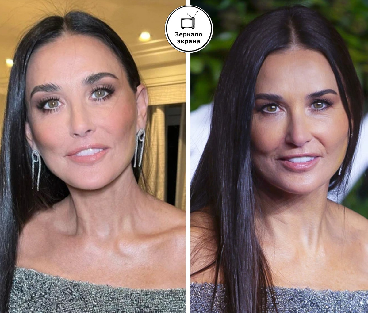 На правом снимке актриса выглядит абсолютно безупречно - с идеальным макияжем, безукоризненной прической и ослепительной улыбкой. Однако для публикации в соцсетях она почему-то выбрала левый вариант, где ее лицо кажется неестественно худым, а глаза потеряли свой привычный блеск.