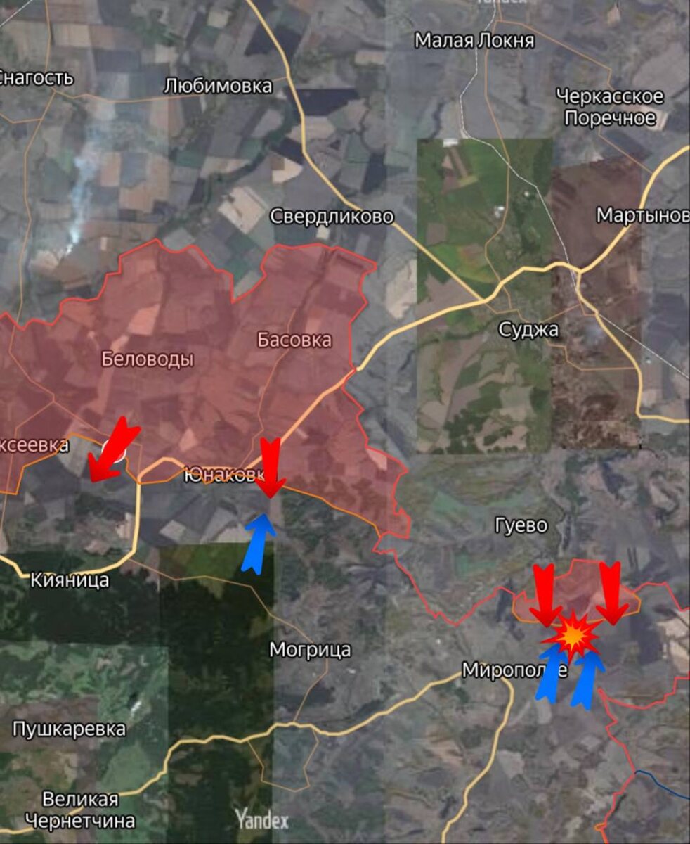 🪂 Сумское направление. ▫️ На левом фланге в районе Юнаковки продолжаются бои. Наши бойцы восточнее населённого пункта продвинулись по берегу реки, идет работа по вражеским блиндажам в посадках. Хохол вынужден оттягивать силы из-за натиска нашей армии. Но сама Юнаковка ещё не взята. ▫️На правом фланге на участке Мирополья. Мирополье и Александрия пока за противником, наши бойцы пытаются штурмовать, но пока без особых изменений линии фронта. С одной стороны у противника менее выгодная позиция из-за того, что находится в низине, но удерживают фронт исключительно неимоверно большим количеством расчетов БПЛА, тут и ФПВ и Бабы Ежки, и дроны на оптоволокне. ▫️ Дневник Десантника
