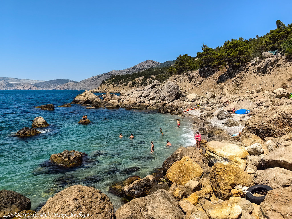 Еще раз убедились, что Севастополь - правильная локация. Сел на общественный транспорт, и ты уже снова в Балаклаве. Далее прыг сразу на катерок (400 рублей с человека), и ты на пляже Инжир. В этом отдаленном уголке царит дикая природа, где к пенным волнам вплотную подступают стройные мачты сосен и каменные тела скал. Вода чистая-пречистая, купаться одно удовольствие. Кстати, здесь даже инет отличный. Короче, все 33 удовольствия в одном месте. Показываю, как там хорошо. Пляж Инжир находится рядом с Балаклавой, но на самом деле он не один - здесь протянулась целая цепочка домашних, уютных бухточек, где можно весьма неплохо отдохнуть. Самый ближний к Балаклаве серебряный пляж, далее Золотой, а самый дальний, как раз Инжир. От Балаклавы пляж находится недалеко - всего в шести милях по морю. Вот он как раз ближний Серебряный пляж. Он галечный длиной всего 100 м. Возят сюда за 150 рубликов. А это уже наш выход. Почему же пляж называют Инжиром? На данный момент отроги бухт полностью заросли а