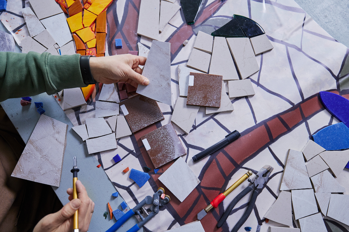 Многие друзья, ученики и гости Школы Искусств ArtWorker часто спрашивают, безопасен ли сбор мозаики в домашних условиях? Ведь, зачастую, материалы используемые для этого вида творчества непросты в обращении, требуют специально подготовленное рабочее пространство и много места для хранения материалов. В этой небольшой статье мы рассмотрим простые правила, которые помогут вам начать собирать мозаику там, где вам удобно! При подготовке рабочего места нужно учитывать особую спецификацию отдельных материалов Хранение материалов. Самым насущным вопросом всегда является поиск места для хранения рабочих инструментов и мозаичных материалов, особенно когда речь идет о домашнем интерьере. Но даже на просторах небольшой квартиры можно найти пару свободных полок, или относительно незанятый шкаф и переоборудовать его под хранение рабочих инструментов. А что бы стеклянная плитка, камень или смальта не терялись и не перемешивались по всем полкам, лучше всего распределить их в отдельные пластиковые кон