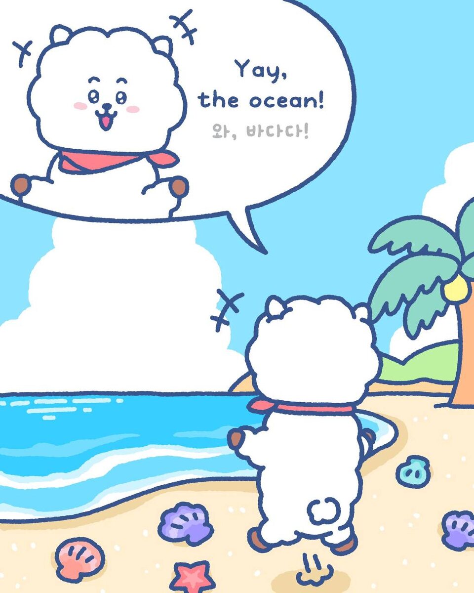 🍊 Обновление X BT21: Кто готов забрать это домой? 🐚✨ Перевод с фото: 1. RJ: Ура, океан! 2. RJ: Ах, какие милые ракушки! Я хочу привезти их для ребят. 3. (Ракушка шевелится) RJ: Э? Малыш Тата?! 4. RJ: О, ребята! 5. RJ: Ммм... Мне приснилось... 6. RJ: Вот вам сувениры! Все: Как там океан? Ты подзагорел! Что это? Ракушки! #BT21 @kumihobts