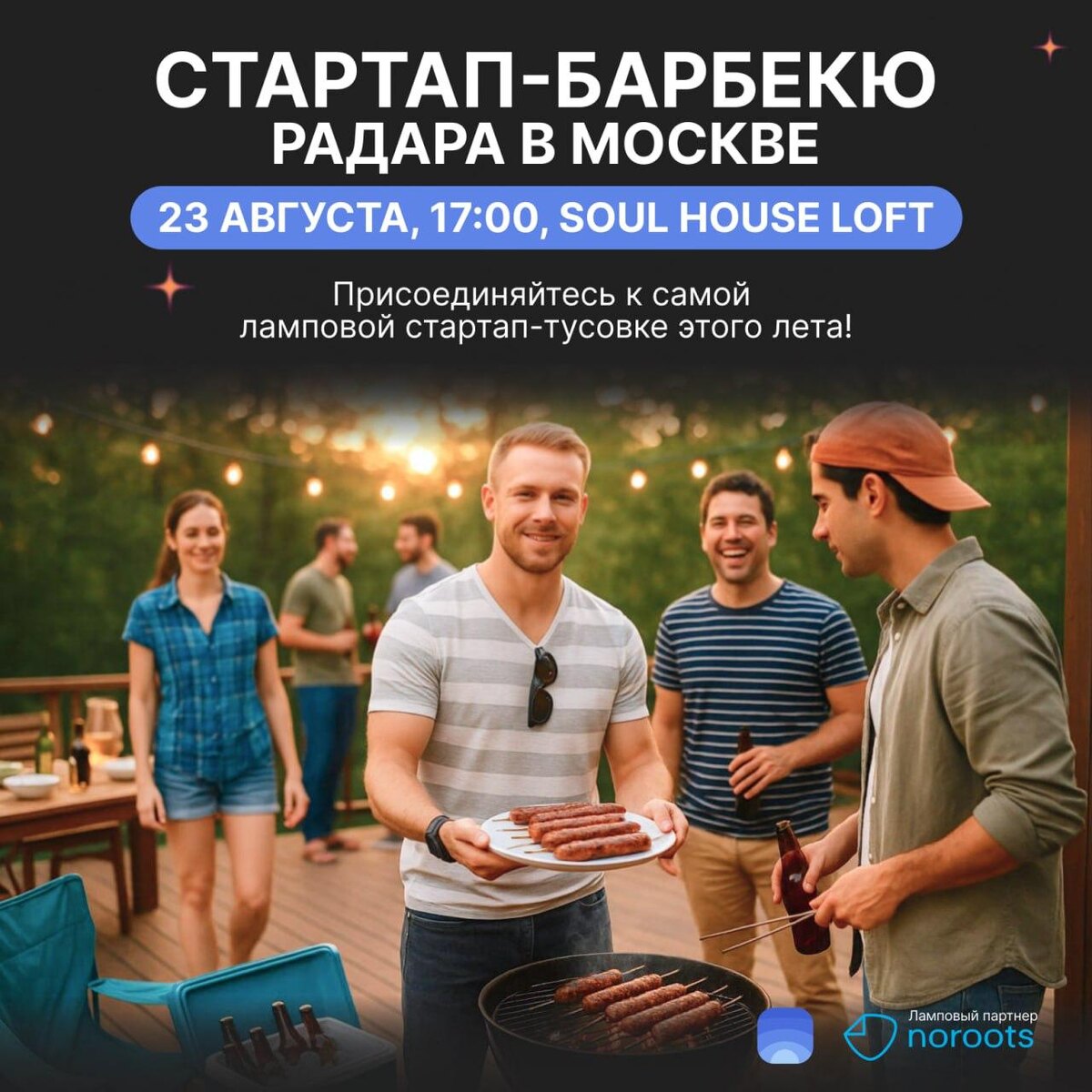 «Стартап-барбекю» Радара в Москве! 🍢🔥🚀 23 августа – первая встреча нашего стартап-сообщества с шашлыками, питч-баттлом под биты, просмотром «Кремниевой долины» и уютной атмосферой у костра. Друзья! Мы нашли и забронировали на август лучшее место для встречи сообщества в Москве – Soul House Loft! Это домик с приятным и стильным интерьером, дворик размером в 350 кв метров, зона для мангала и костра, проектор, колонки и барные стойки снаружи и внутри. Выглядит ну очень камерно и точно отражает ламповость нашего сообщества. Расположение тоже великолепное – 5 минут от метро Бауманская или 10 минут от Комсомольской. Мы забронировали этот лофт на субботу 23 августа с 17 до 22 часов. Соберем 50-60 человек из друзей, резидентов и партнеров площадки. Там будет даже наш комьюнити-менеджер Саша Шевцов! 🤩 📺Программа вечеринки: - стартап рэп-баттл (шуточные дуэли основателей с прожаркой под биты), - выступления в стиле Ted Talks про реальную жизнь предпринимателей и выученные уроки, - вик