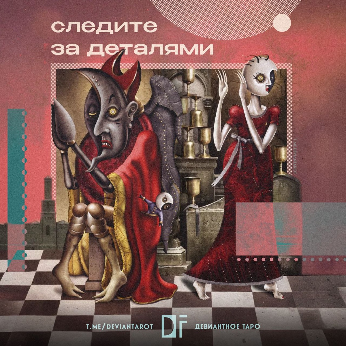 🌚 Сегодняшнее наблюдение - из серии «мелочей не бывает». В Таро Безумной Луны позы, складки на одежде, даже защита на коленях могут рассказать больше, чем название аркана. Пример из свеженького - расклад на отношения после конфликта: что он будет делать и что она.