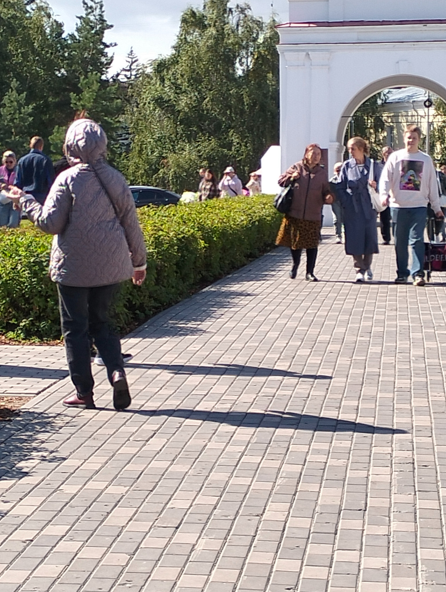 Сегодня мы с дочерью решили посетить выставку "Флора-2025". Для тех, у кого сейчас за окном жара ☀️ в 30 градусов и выше, может странно прозвучать информация о том, что у нас сегодня температура воздуха +14°. Но омичи привыкли не удивляться капризам погоды нашего резко континентального климата, надели теплую одежду и пошли по своим делам. Двое дедушек основательно подстраховались: надели дождевики. В центре города бываю редко и не во всех местах, поэтому сегодня первый раз заметила интересные детали: такие вот оригинальные лавочки: А вот новая комбинированная лестница, по которой удобно подниматься и опускаться мамам с колясками и маломобильным людям: Памятник-светофор стои́т уже четыре года , а я его сегодня только первый раз увидела: Ещё не дошли до сквера им. Дзержинского, где проходит выставка, как начали попадаться инфраструктуры, означающие, что где-то рядом проводится многолюдное мероприятие. Но вот мы прошли Омские ворота, и вот она перед нами, "Флора-2025": Перед входом на