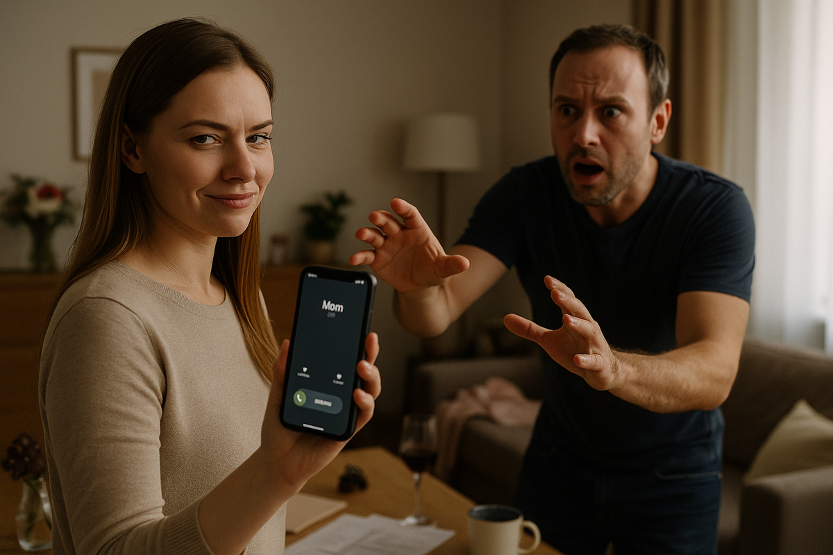 Ирина достала телефон и начала набирать номер свекрови. Сергей бросился к ней, пытаясь выхватить трубку.