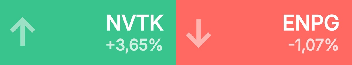 🔺 Топ-10 лидеров роста среди крупнейших акций: Новатэк • 1 051 ₽ • 3,65% Газпром • 126 ₽ • 3,43% Лента • 1 650 ₽ • 3,25% КЦ ИКС 5 • 2 955 ₽ • 2,75% Лукойл • 6 064 ₽ • 2,60% Роснефть • 428 ₽ • 2,55% Полюс • 2 014 ₽ • 2,42% Европлан • 645 ₽ • 2,27% М.Видео • 90,20 ₽ • 2,15% Группа Рус • 107 ₽ • 2,06% 🔻 Топ-10 лидеров падения среди крупнейших акций: Эн+ • 441 ₽ • -1,07% Группа Поз • 1 359 ₽ • -0,63% Московский • 7,20 ₽ • -0,51% Астра • 401 ₽ • -0,15% Циан • 573 ₽ • -0,07% Мосэнерго • 2,06 ₽ • -0,05%