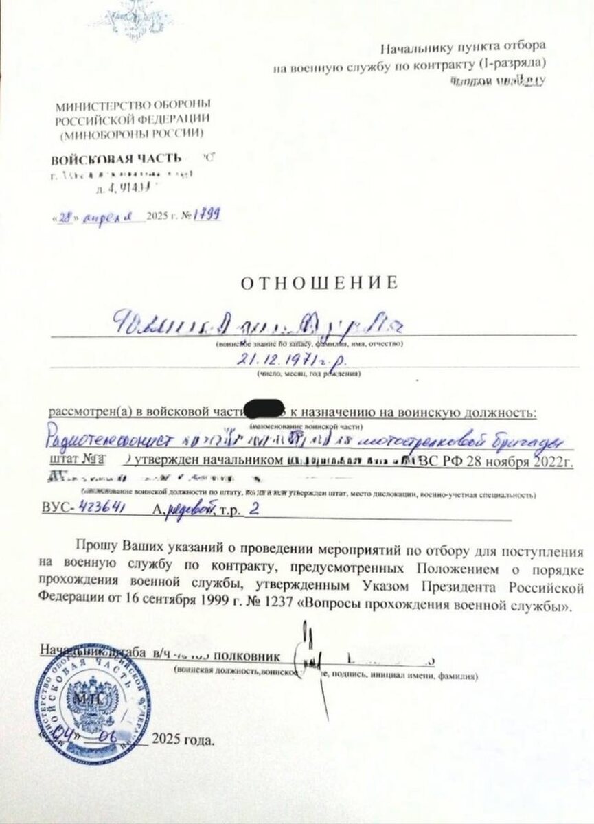 В военкомате его уверили, что он идет на должность радиотелефониста, дали отношение из воинской части.