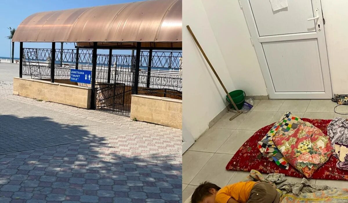 Пьяный кассир и спящие на полу дети: жуткие кадры из туалета на набережной Актау