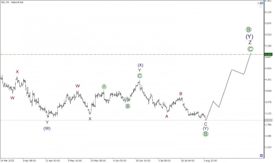 https://basechop.ru/wordpress/?p=52453 Глядя на текущий график, можно заметить, что по Газу может формироваться крупный коррекционный тренд. На текущем графике представлена разметка большой действующей волны (Y), принимающей форму тройного зигзага W-X-Y-XX-Z. На текущем графике мы видим, что действующая волна Z похожа на стандартный зигзаг, внутри которого завершен импульс [A]. Также могла завершиться коррекция [B], принявшая форму двойного зигзага (W)-(X)-(Y). В процессе построения может находиться начальная часть новой бычьей волны [C], которая, вероятнее всего, примет форму импульса, как схематично отображено на графике. Предполагается, что быки вполне могут вывести рынок к предыдущему максимуму 4.93. В текущей ситуации можно рассматривать открытие длинных позиций с целью забрать прибыль на указанном уровне. Торговые рекомендации: Buy 2.92, takeprofit 4.93. Материал предоставлен компанией InstaForex – www.instaforex.com Глядя на текущий график, можно заметить, что по Газу може