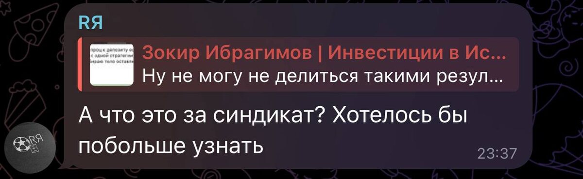Криптосиндикат - это единое решение для людей, которые ищут способы получения прибыли от инвестиций, и способы заработка. Платформа синдикат состоит из 3х инструментов по подписке, которые включают в себя: Обучение (Топовые курсы в одном месте, ценностью более 600 тыс рублей). 🟠Традиционные инвестиции 🟠 Инвестиции в блокчейн и криптовалюты 🟠DeFi 🟠P2P торговля 🟠Алготрейдинг (бот) Инвестиционные инструменты 🟠Портфели (криптовалюты, дивидендный портфель, портфель роста) 🟠Пул ликвидности (пассивный доход ~15% годовых) 🟠Венчурные инвестиции (5 из 7 проектов вышли в хороший плюс) Закрытое сообщество в телеграмме 🟠Поддержка менеджеров и кураторов 🟠Отдельные чаты по всем направлениям 🟠Раздел Аналитика 🟠Раздел портфели (публикация сделок) В это воскресенье в 18:00 мск, ин шаа Аллах, я проведу большой эфир на тему «Сколько нужно времени нужно, чтобы овладеть навыками инвестирования в крипту», и там подробно отвечу на вопросы касательно синдиката. Ссылку выложу на этом канале.