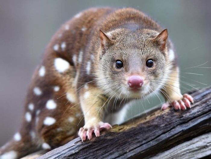 Все знают, что хищников в Австралии раз, два и обчёлся. Но при этом эти хищники один интереснее другого. С тасманийским дьяволом мы уже знакомились, самое время обратить внимание на его извечного соперника – кволла, или крапчатую сумчатую куницу. Кволл – зверюшка для этих краёв довольно крупная: в длину с учётом хвоста вымахивает более метра и весит до 7 кг. Просчитались, но где? На сегодняшний день кволлы обычны исключительно для дикой природы Тасмании. До начала двадцатого века они обитали по всей юго-восточной Австралии, однако были вытеснены человеком. История там вообще довольно маразматичная вышла. Хищный и вечно голодный кволл быстро смекнул, что добывать пищу в лесу куда энергозатратнее, нежели просто воровать птицу и кроликов с ферм, а самое главное выедать с территорий человека полчища мышей и крыс. Жадненькие фермеры резво посчитали убытки от воровства кроликов и принялись воинственно истреблять кволлов, полностью уничтожив континентальную популяцию к концу 1950-х гг. И толь