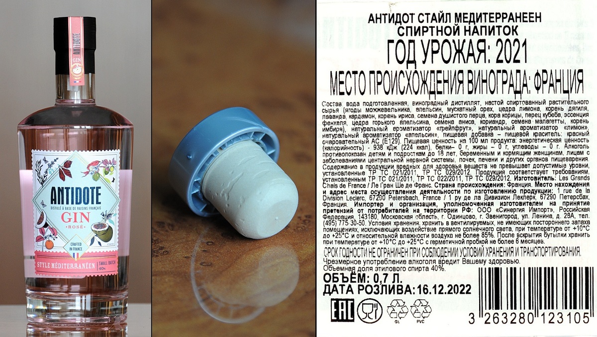 Продолжаем знакомиться с джинами. Обзор от моего друга El_gorra (текст и фото автора, ссылка на оригинал в конце обзора). И снова французский Антидот, только теперь розовый. Les Grands Chais de France Antidote Rose Style Mediterraneen Gin. После очень даже стабильного и серьёзного London Dry, хотелось попробовать окрашенный вариант от этого интересного французского производителя. В руки лёг джин, окрашенный розовым (Rose Style Mediterraneen Gin).