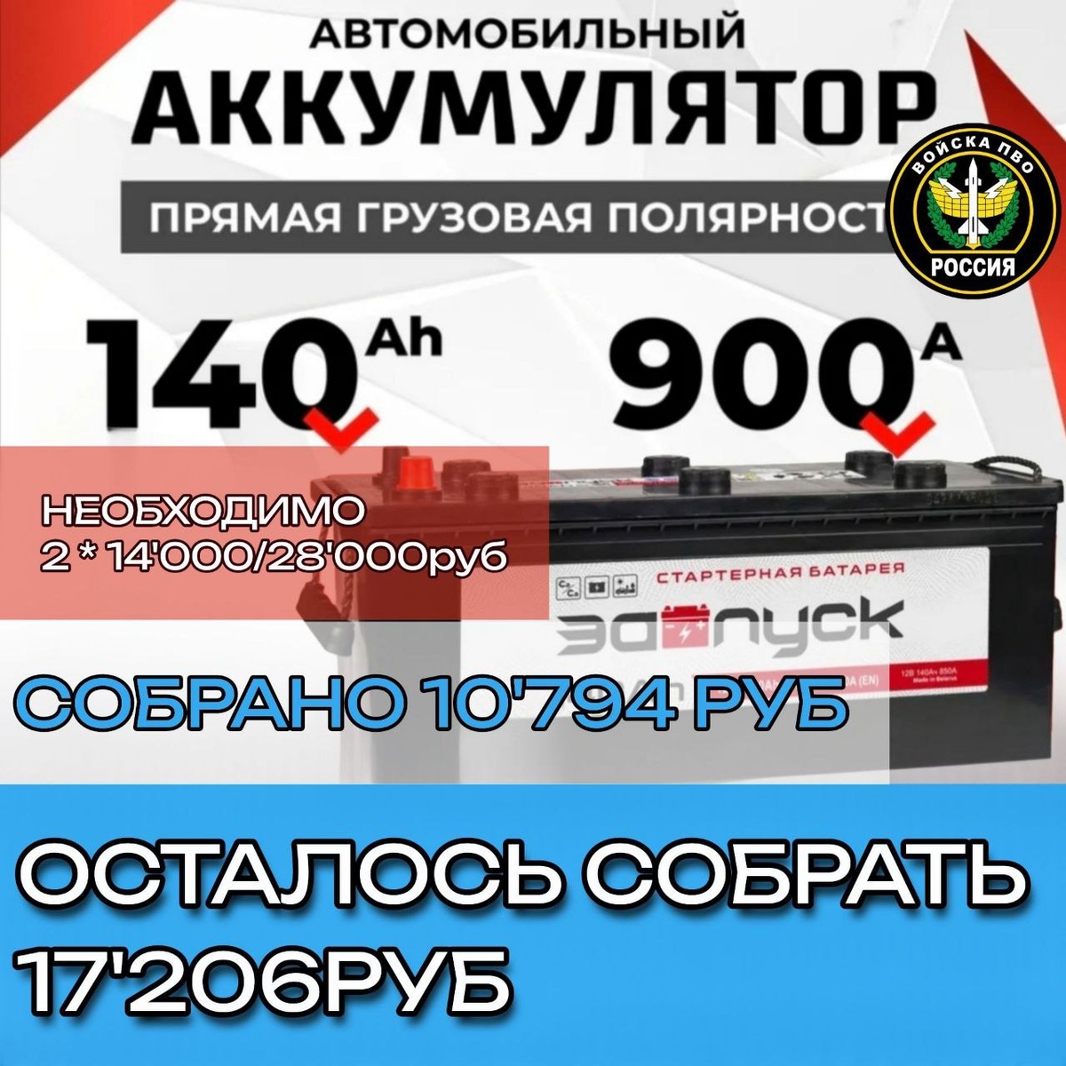 Собираем на автомобильные аккумуляторы, ребят, для ПВО