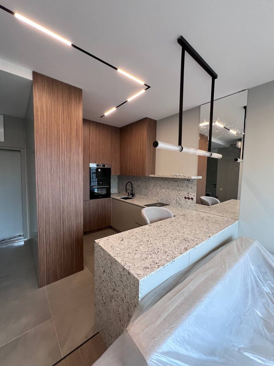 Кухня сразу после #сборкимиксон⚒️ Нравятся вам такие истории с колес❓ Показываем недавно реализованный проект кухни совмещенной с шкафом🔥 Детали: 📎Материал фасадов: МДФ шпон+МДФ эмаль 📎Цвет: Мультишпон 1018S Вертикально+ Ral 7044 📎Размеры: 1792х2380х3445х1980 мм 📎Высота: 2822 мм 📎Фурнитура Blum Доп. Компл.: ▪️Лоток BASIC SOFT-TOUCH для столовых приборов ▪️датчик открытия дверей ▪️Пантограф для гардеробной усиленный Конеро W 985-1168 мм нагрузка 4-15 кг цвет ЧЕРНЫЙ Kessebohmer ▪️VOGUE Штанга прямоугольная 30х8, с пазом под демпфер, черный (анод), L-300 ▪️Коврик 480*1.2мм, цвет орион серый 📎Стоимость: 1 217 809 рубля. Менеджер: Хуторкова Ольга Дата заказа: 18 декабря 2024 г Проект прикрепим в комментариях⤵️