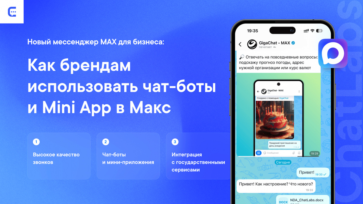 Хотите узнать, как использовать мини-приложения и чат-ботов в MAX для малого, среднего или крупного бизнеса? Просто оставьте заявку в Телеграм @chatlabs_manager или на почту hi@chatlabs.ru. Хотите узнать, как использовать мини-приложения и чат-ботов в MAX, VK, Telegram для малого, среднего или крупного бизнеса? В бесплатном чек-листе разбираем типичные ошибки и как их избежать (особенно когда на кону вопрос инвестиций на сотни тысяч рублей). А еще предлагаем реальные примеры и опыт реализации в кейсах.