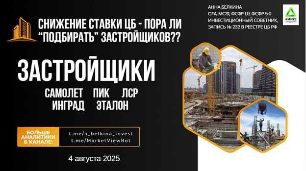 #Застройщики #video Снижение ставки ЦБ - пора ли “подбирать” застройщиков?? #SMLT #PIKK #LSRG #INGR (#KFBA) #ETLN в видео «ЦБ РФ снижает ставку - какие сектора в выигрыше и стоит ли расслабляться?» от 30 июля перечислила секторы-бенефициары снижения ставки. https://dzen.ru/media/id/65b8789ff12bfe0796a26941/video-688a0a7ee851c3015511ce2f Среди этих секторов – Недвижимость. Нюанс снижения ставки в том, что его эффект мы начнем ощущать спустя 2-3 квартала, а пока Застройщики имеют все шансы продолжить падение. Однако есть один фаворит среди публичных застройщиков – об этом подробнее в видео. YouTube | Rutube | VK Видео | Дзен Не является ИИР 💪 Бот Закрытого Канала (подписаться из-за границы, пишите личным сообщением)