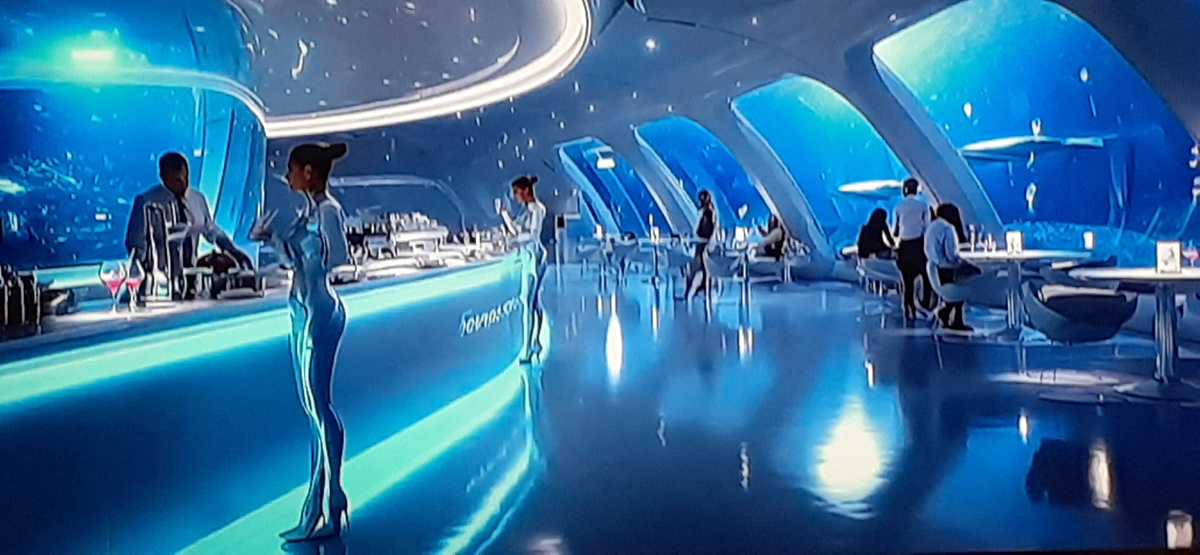 Бар космического корабля — тихая гавань среди звёзд. Лёгкий туман радужных искр витал над головами посетителей, создавая ощущение, будто сама Вселенная решила подарить вам частичку своей энергии.