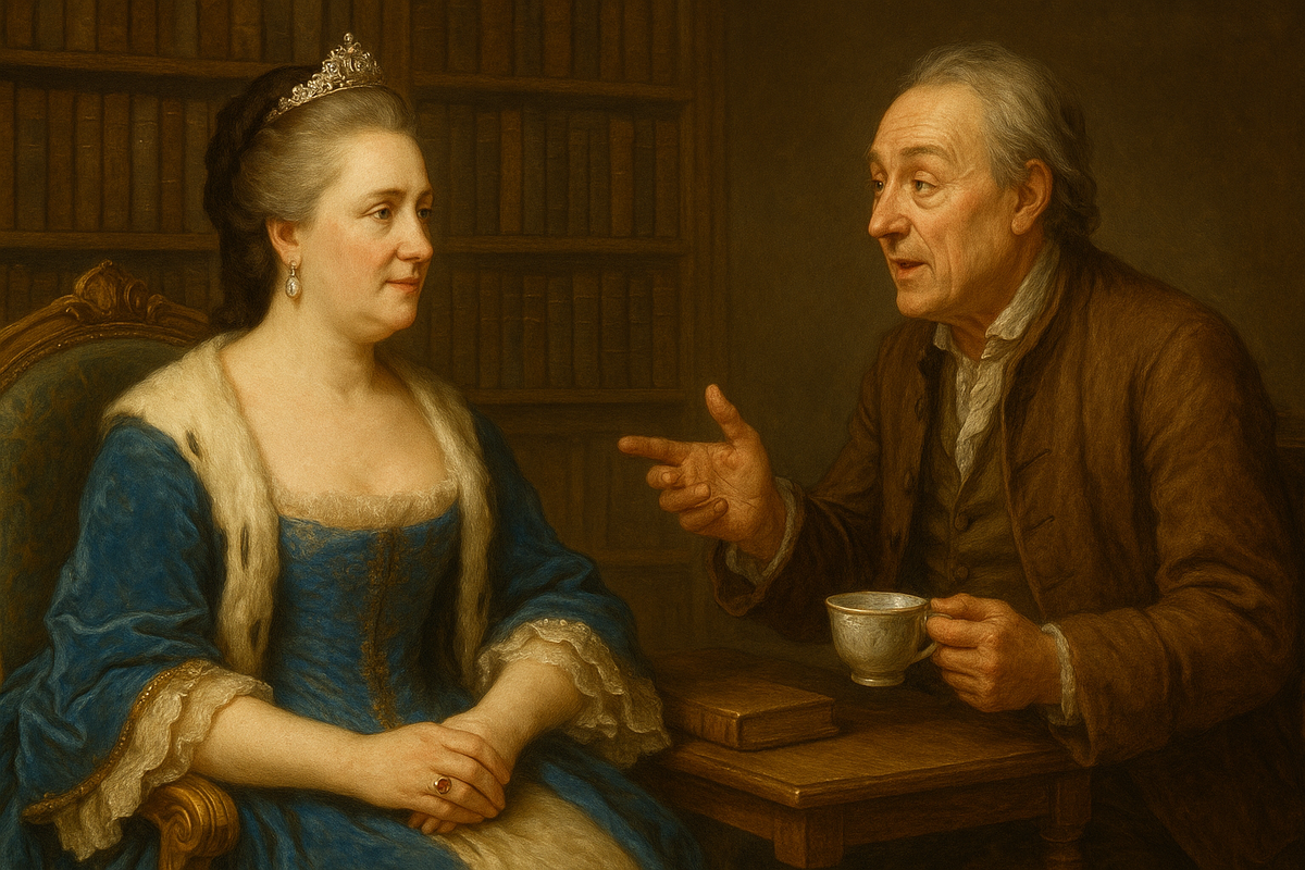 В конце XVIII века, когда в моде были просвещение, энциклопедии и язвительные письма к королям, Екатерина II поняла простую вещь: если хочешь, чтобы тебя уважали в Европе — не нужно завоёвывать города, достаточно завоевать внимание тех, кто пишет о них. Французские философы умели формировать общественное мнение ничуть не хуже армий. Императрица решила действовать без бряцания оружием. Она не просто читала труды Вольтера и Дидро, а сделала их авторов своими союзниками. Своими — в прямом смысле слова: сначала купила их книги, потом их расположение, а вместе с этим и новую репутацию для Российской империи. Деньги ушли немалые, зато о Петербурге заговорил благодаря голосам лидеров мнений. В 1765 году Дени Дидро продал Екатерине II свою домашнюю коллекцию за 15 000 ливров, но остался её пожизненным хранителем и получал ежегодное жалованье в 1 000 ливров — редкий случай, когда продавец остаётся при товаре . Через несколько лет философ приехал в Петербург: пил заварку, бушевал против крепост