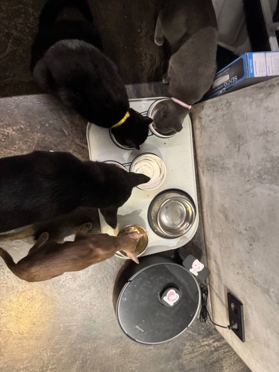 Вечерняя кушка для прайда. Наши малыши ужинают все вместе. У Грини самый лучший аппетит, а Мачи ест хуже всех. Вот такие молодцы сегодня, что аж на видео удалось запечатлеть)))